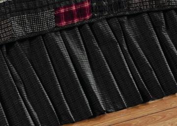 King Skirt 78"x80"x16".Plaid and striped united states colors of pink, cream, tan, navy, black and gunmetal blue.100% cotton. America is our unbelievable patriotic-Americana tribute to Old Glory. Plaid & striped united states of america colors of red, cream, tan, navy, black & gunmetal blue incorporate this masterpiece. Available in bedding, window remedys, & shower curtains..