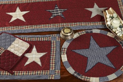 Coordinating bedding, window therapys, and kitchen coordinates additionally on hand..Bold red, white and blue megastars on quite lots of plaid and patterned backgrounds of the same tones.100% cotton, mechanically cleanable.36" Patchwork Runner.As pictured at top of picture. Coordinating placemat, tablemat, and potholder additionally proven.. Blue and Red Star is our latest patriotic sample which spotlights daring crimson, white and blue celebritys on quite a lot of plaid and sampleed historical pasts of the same tones..